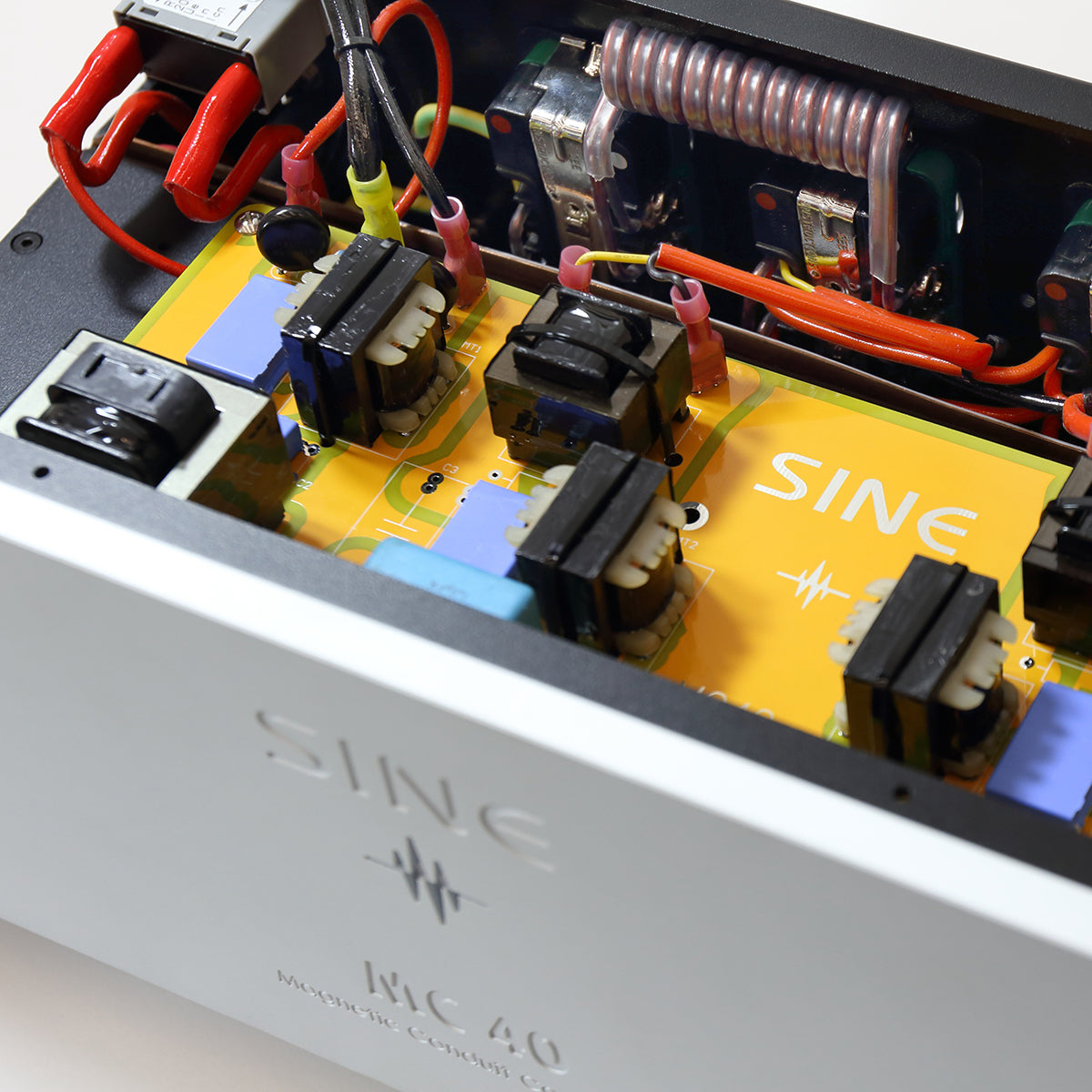 SINE 全新電源處理器MC 40 沿用S-60A 的設計,適合影音及HiFi的中階型號,配備升級的鋁合金雙磁力導管設計及超厚面板,內部線材選用 13 AWG 單支銅線,機身設計對發燒友擺位安置更友善